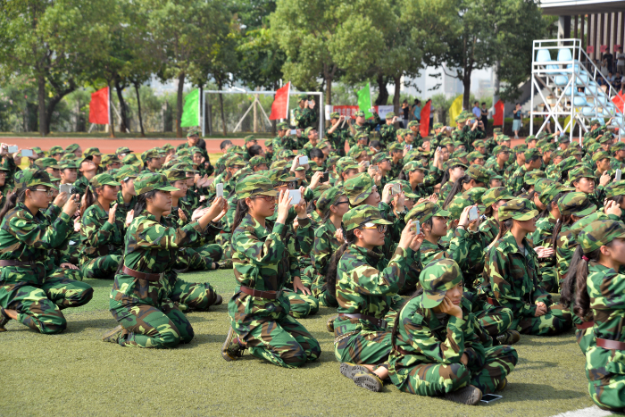 在军训总指挥戴海森教官的指挥下,迎军旗,标兵就位,阅兵仪式正式开始。蔡远利校长亲自检阅参训新生方阵,校长一声声亲切的问候鼓舞着大家的士气。在接下来的分列式检阅中,新生们口号响亮,队列整齐,以昂扬向上的精神,矫健的步伐向主席台的领导们展示多日以来的军训成果。