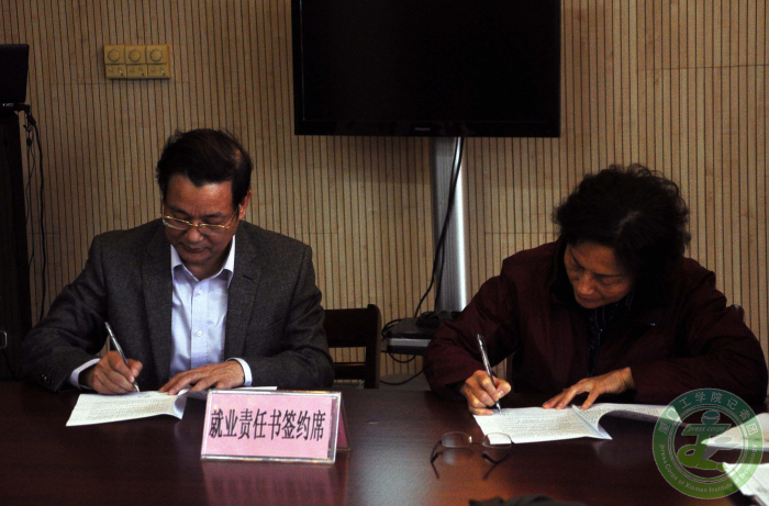 蔡远利校长与建筑系付小利副主任签订2015年就业目标责任书