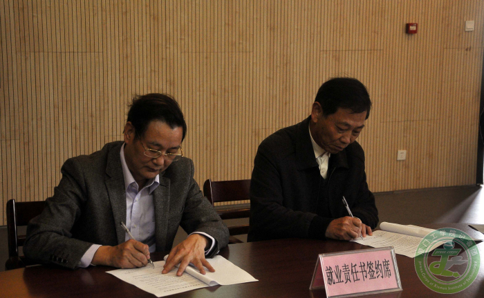 蔡远利校长与何家汉处长签订2015年就业工作目标责任书