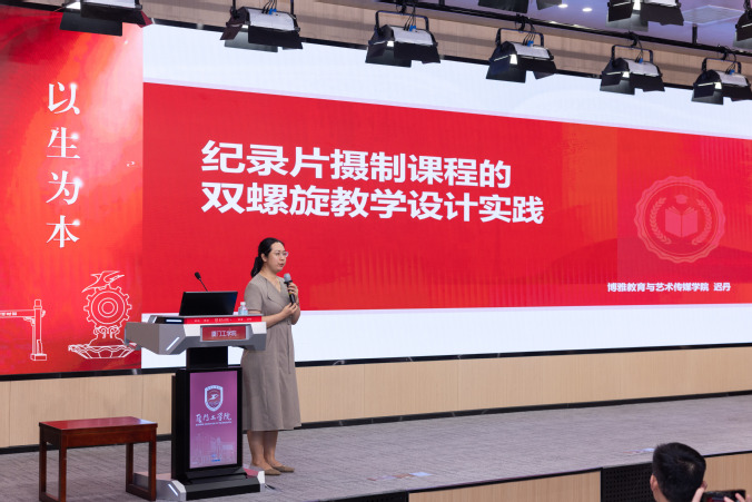 教师教学创新大赛:陈燕燕老师通过项目式教学重构《单片机原理及应用》课程,结合AI助教实现学生个性化学习;迟丹老师分享《纪录片摄制》课程的双螺旋教学设计实践,以技术-成长双轴评价培养兼具人文素养的传媒人才;雷雨老师的《思想道德与法治》融合"小先生+云课堂"实践,运用AI与智慧教室强化与学生的互动。