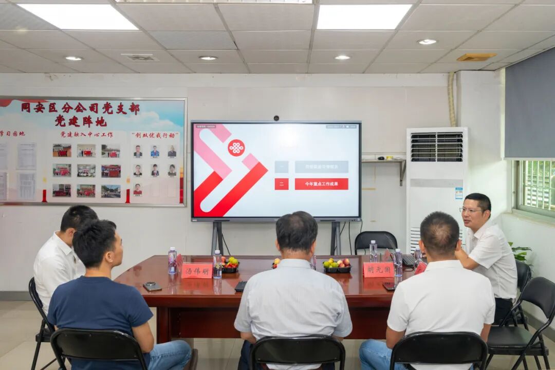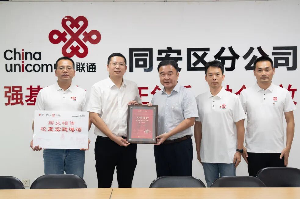 吴永顺校友毕业后深耕通信行业,现任中国联通同安区分公司总经理。在他的引导下,走访团队走进公司业务展示区,沉浸式感受中国联通在通信技术领域的前沿探索成果。