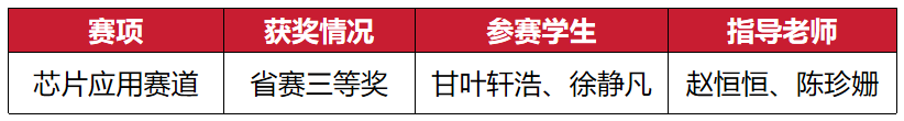 在2025第八届全国大学生嵌入式芯片与系统设计竞赛中,我校甘叶轩浩、徐静凡同学荣获省赛三等奖。