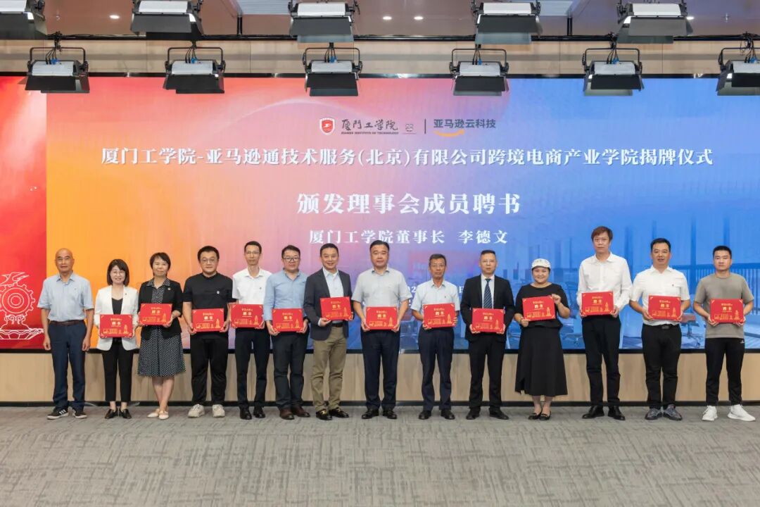 会后,在全场嘉宾见证下,李雄虎副董事长、执行校长与戴强总监共同为跨境电商产业学院揭牌,红色幕布落下,宣告校企合作迈入实质性阶段。