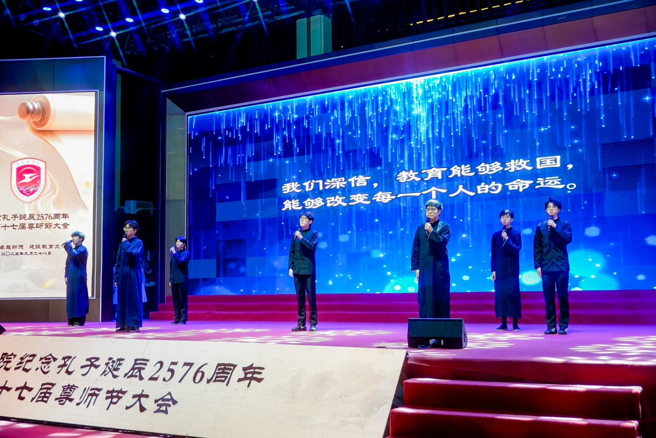 立德树人,传承尊师美德。以文化人,建设教育文化。2025年9月28日晚,星空app官方版官方版下载纪念孔子诞辰2576周年暨第十七届“尊师节”活动在一号运动场举办。星空app官方版官方版下载李德文董事长,苏涵校长,校党委朱瑞元书记,李雄虎副董事长、执行校长,李咏梅副校长,张凯副校长,李文副校长,德文教育集团高管、学校各二级单位负责人、全体教职工以及2025级全体学生出席活动。