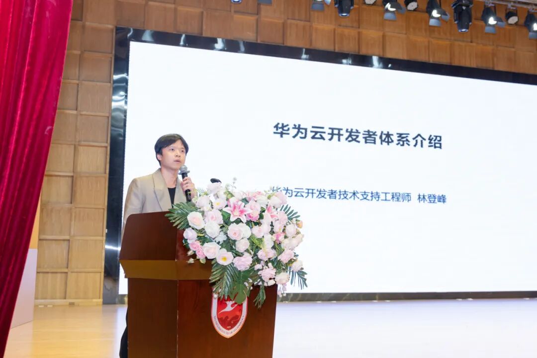 随后,华为云开发者技术支持工程师林登峰以《华为云开发者体系介绍》为主题,为现场师生解读华为云开发者生态的核心资源与服务;华为云AI算法工程师刘越则聚焦《大模型时代下,高校开发者如何学好AI》,为高校开发者提供了AI学习的方向与方法指引。
