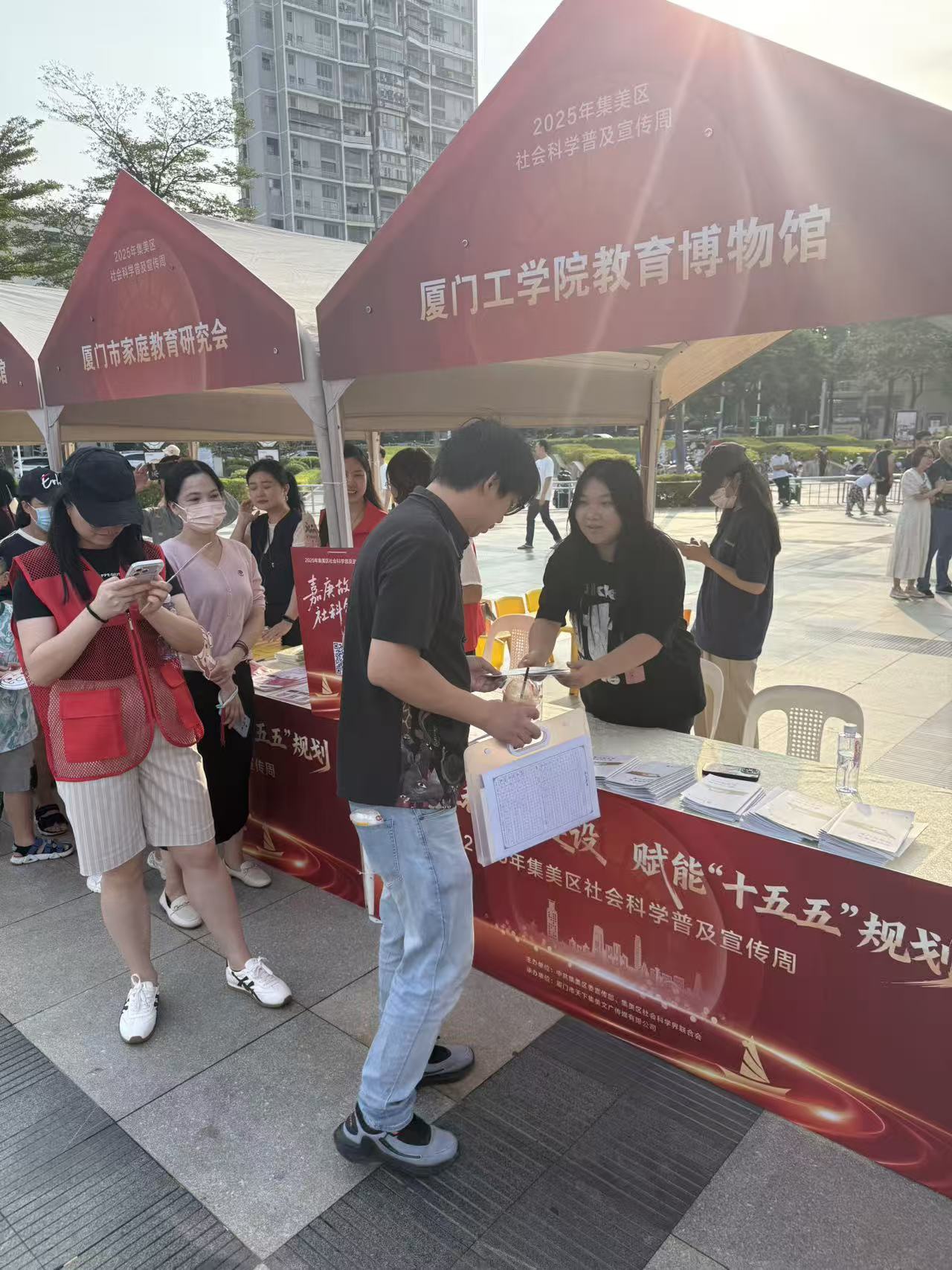 宣传周期间,学校依托自身资源与校地联动优势,打造多场特色展览,让社科知识“看得见、摸得着”。10月26日,学校受邀参与集美区社科联主办的宣传周开幕式展览,宣传“集美区社会科学普及基地”——星空app官方版官方版下载教育博物馆,并重点展出“非遗基因重组计划”非遗文化展,通过实物陈列、图文解读、现场互动等形式,让观众直观感受非遗文化的独特魅力,彰显学校在传统文化传承与社科普及中的责任担当。