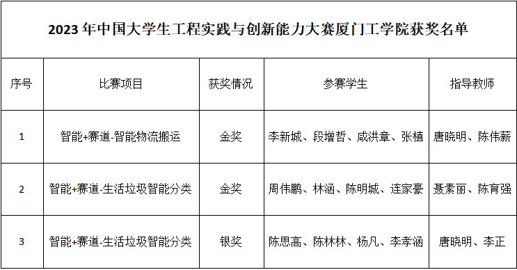12月8日-10日,2023年中国大学生工程实践与创新能力大赛“智能+”赛道比赛在吉林大学举办。本次大赛由教育部高等学校工程训练教学指导委员会主办,来自全国228所高校、371支代表队的1437名参赛选手同场竞技。由工程坊指导教师唐晓明、陈育强带领的参赛队喜获二金一银的优异成绩。