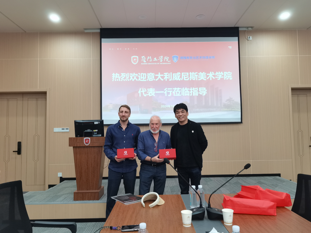 2024年10月24日,意大利国立威尼斯美术学院代表一行来校进行合作交流,本次来访嘉宾有意大利著名雕塑家、意大利威尼斯国立美术学院原院长、教授Giusppe La Bruna、西西里—中国文化艺术交流协会秘书长Pietro La Bruna 。陈舒华校长、博雅教育与艺术传媒学院陈国军院长及教师代表们共同接待了来访嘉宾。