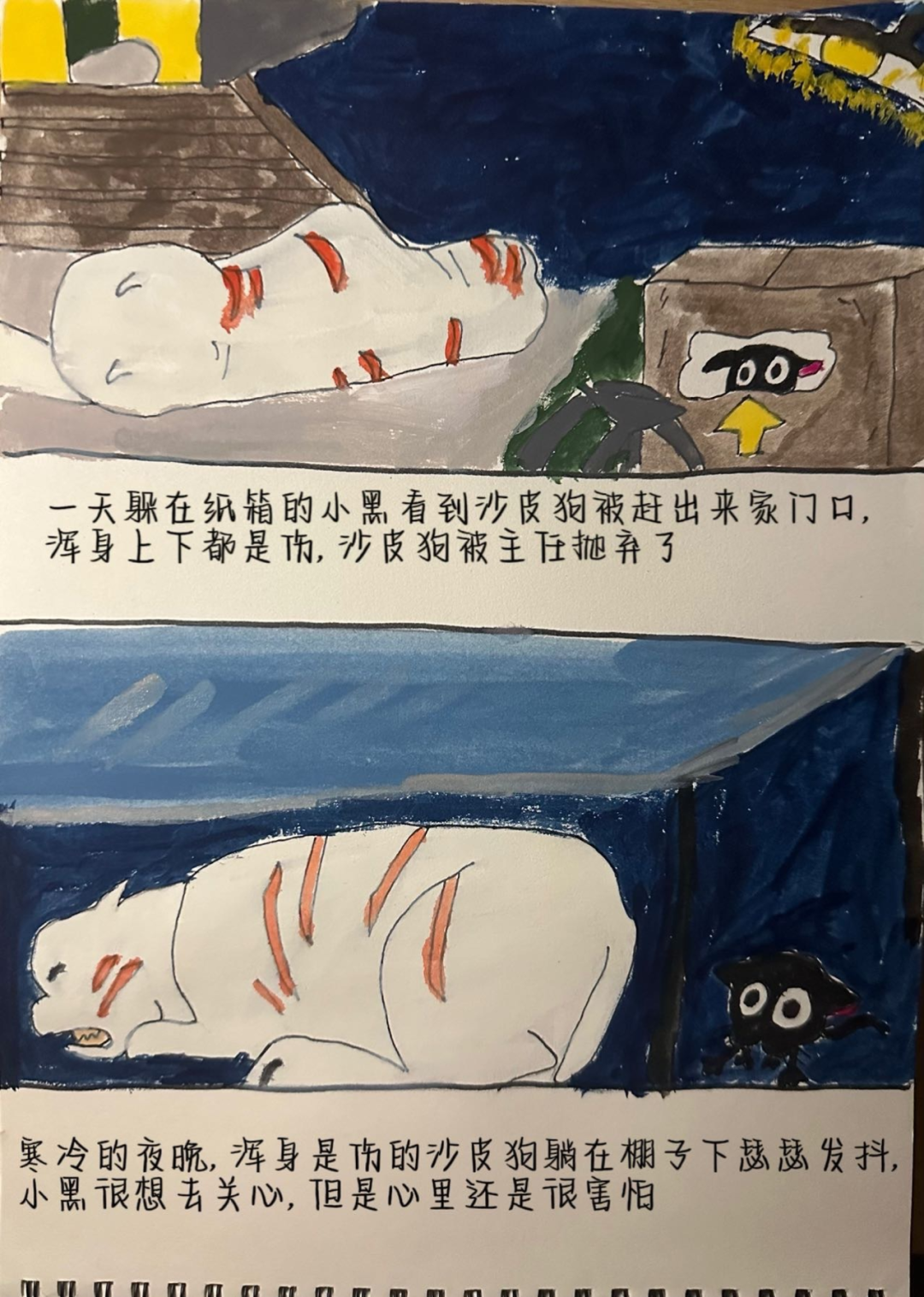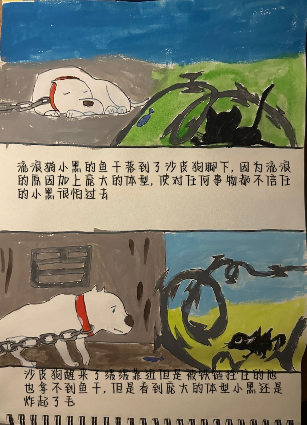本次课程成果线上展的主要内容为展示2023级广告1班、2班在2023年至2024年第一学期《美术基础》课程中产生的部分优秀作品。《美术基础》是面向广大非美术专业大学生的通识教育课程,也是广告学专业的一门重要的专业必修课程,是后续专业课程的重要基础。此课程旨在帮助学生建立起基本的美术理论知识体系,提高学生的审美意识,培养他们的创新思维和动手能力,为将来进一步深入学习美术或将美术技能应用于其他领域打下坚实的基础。本次展示的课程期末作业让学生们从“自我表达作品集”“海洋文化科普书”“童话故事广告片”的三个主题中,自选一个主题进行简单绘本分镜创作,绘制至少6张画面讲述一个简单的故事情节,帮助学生将所思所想所感用绘画的形式表现出来。