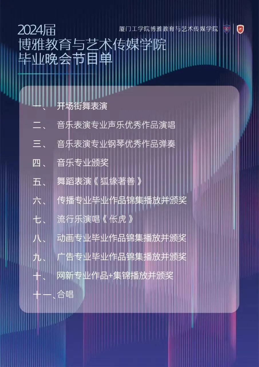 毕业晚会是我们对大学时光的深情回望,也是对未来的美好憧憬,更是向未来迈出新一步的起点。以歌送情,以舞话别,让我们在此夜晚共同编织一段难忘的回忆,为青春画上一个完美的句号。