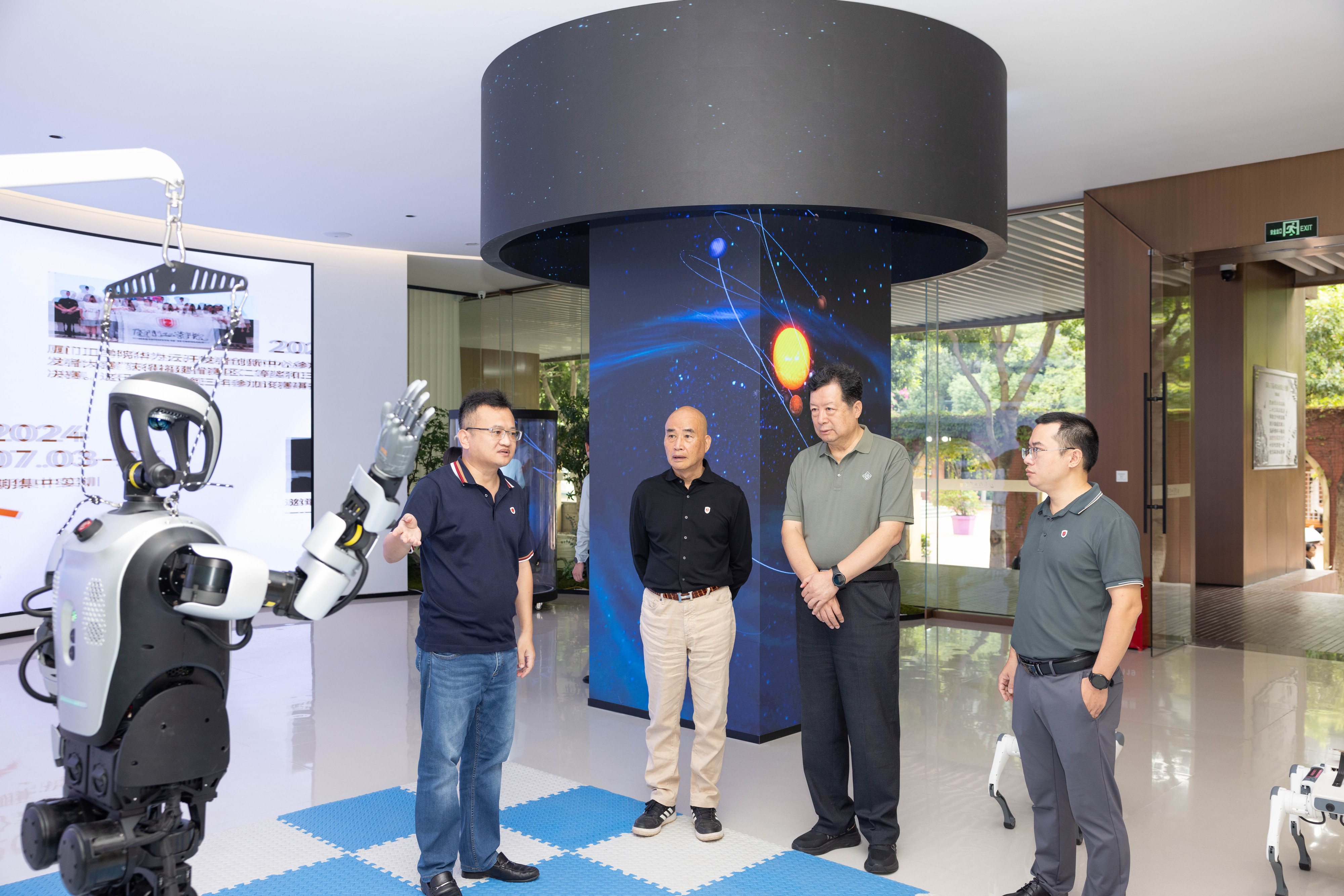 此次访问中,学院执行院长谢志春首先详细介绍了学院的建设发展历程、核心教学理念及学院在项目实践、科研攻关、产业服务等方面的成果贡献。徐望教授重点介绍了学院的先进科研设施,包括高精度灵巧手、智能协作机器人、全息数字人等前沿设备。现场华为方技术人员进行了操作演示,生动展现了设备的技术特点与应用潜力。蒋院士全程认真聆听,不时就技术细节、研发进展与未来应用方向与在场人员交流互动,并提出宝贵意见。