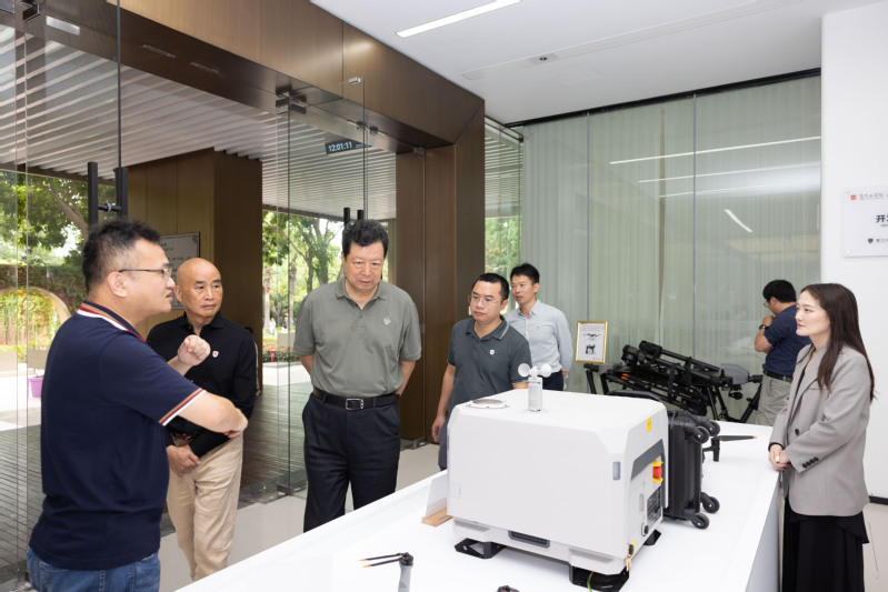 最后,蒋庄德院士一行前往低空经济区参观指导。徐望教授详细介绍了实验室的建设定位、研究方向及各类无人机的技术特点、研发进展及应用场景,就低空经济的发展趋势与技术挑战进行了深入探讨。
