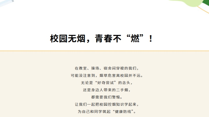 校园无烟,青春不“燃”!警惕身边 “隐形烟害”,校园控烟攻略请收好~