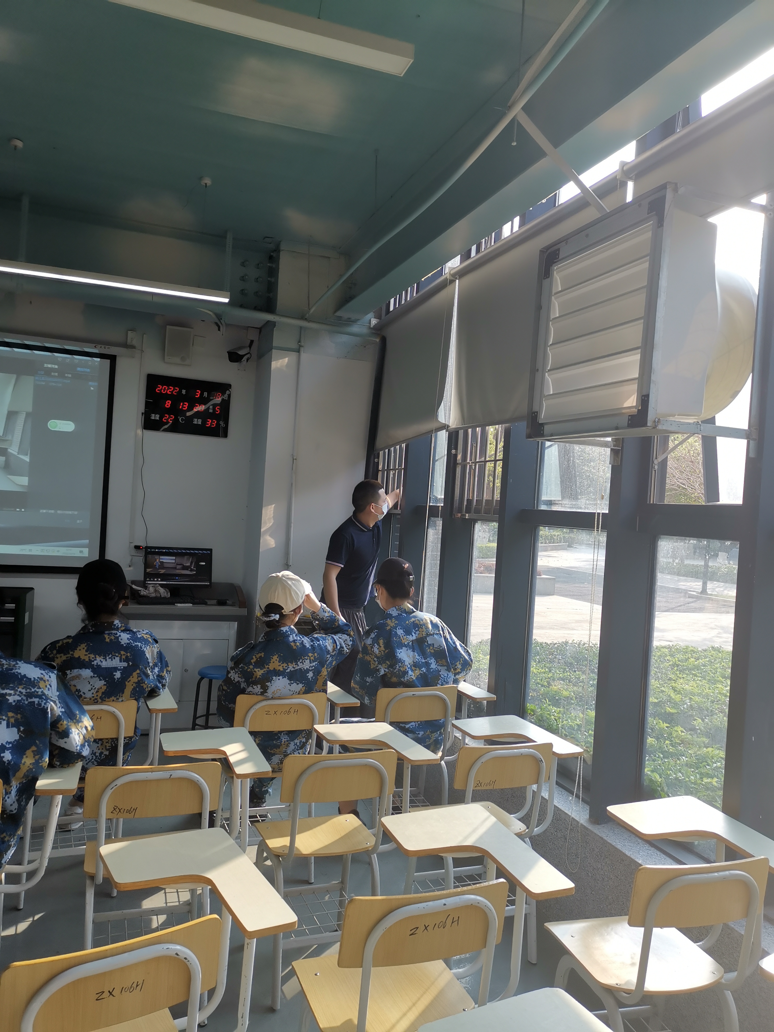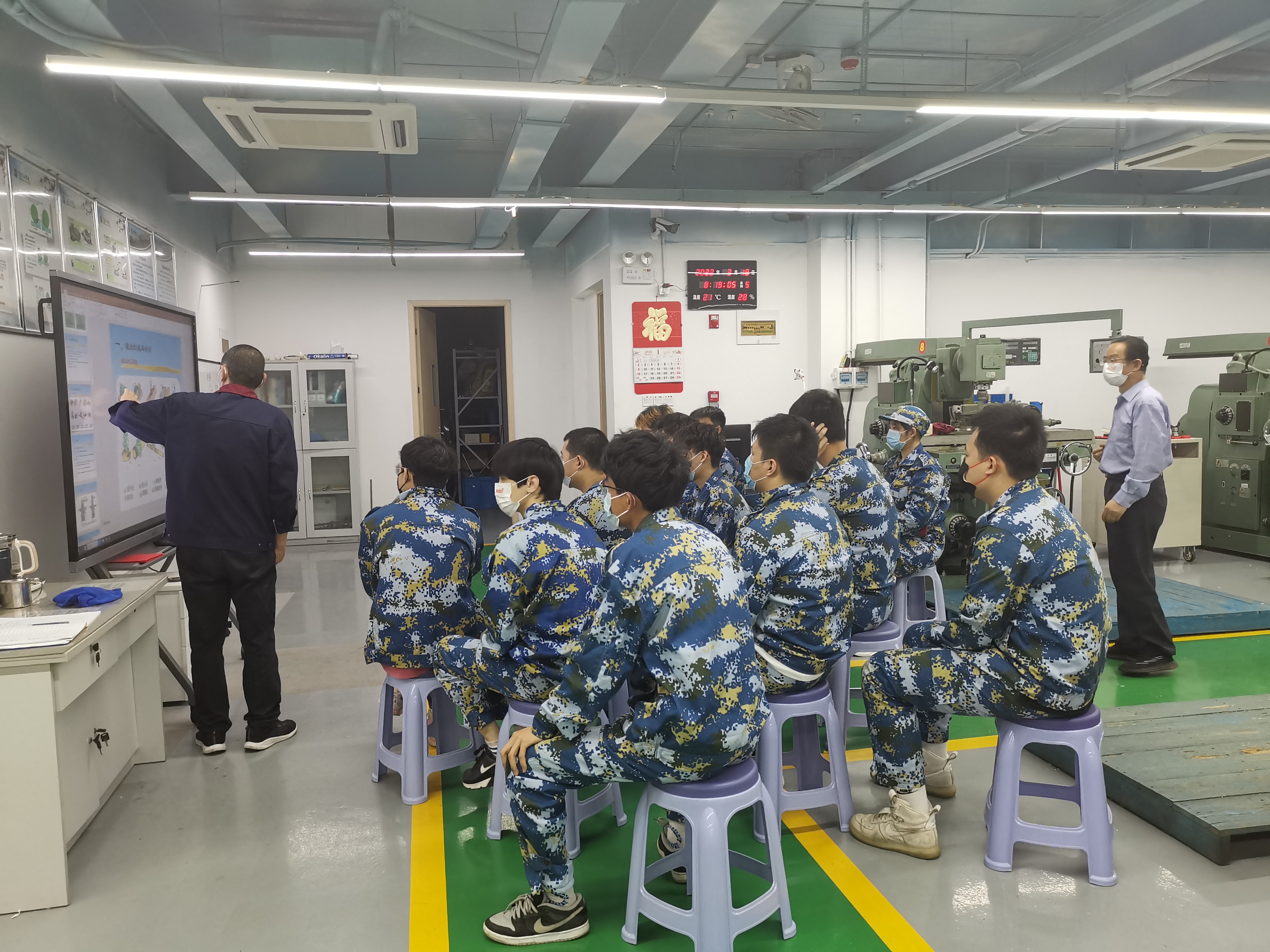 学生进入实训室后,实训老师再次提醒同学们做好防疫措施,保持一定距离。