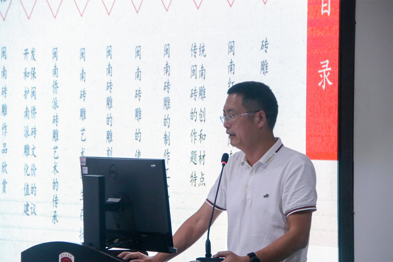 胡文贤老师围绕 《非遗侨派砖雕的创生与四理赋能实践探索》 展开了深入分享。讲座伊始,胡老师通过自身传承历程与重塑闽南文化的初心,深刻阐述了如何将侨派砖雕这一独特文化遗产作为载体,创新性地融入心理健康教育,探索文化认同与心理疗愈的结合点。