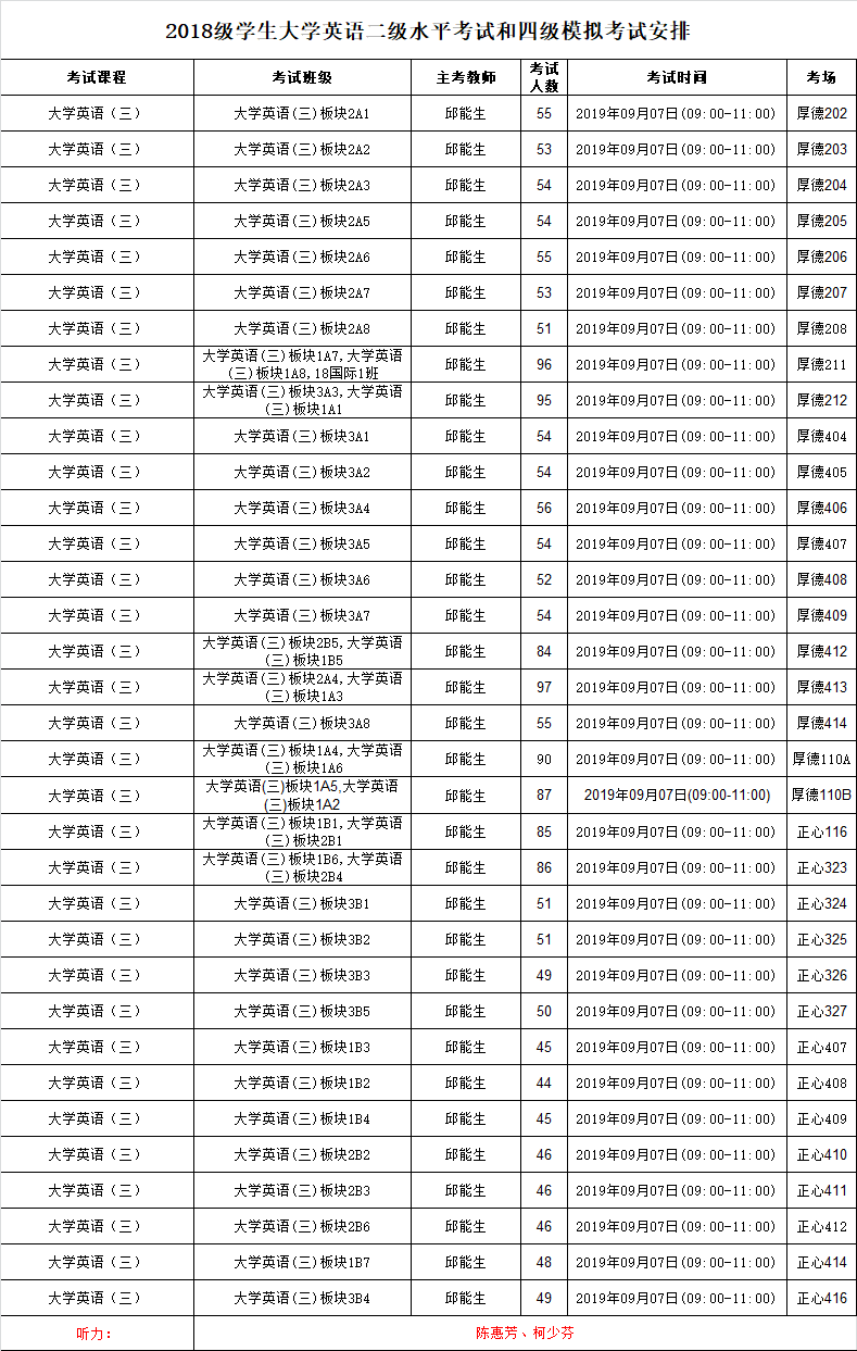 2018级学生大学英语二级水平考试和四级模拟考试安排