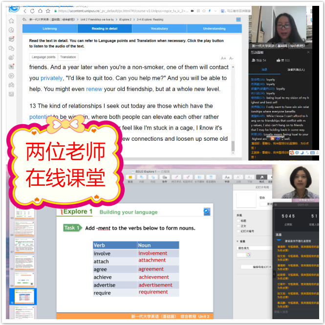 大学英语课程面向2018级、2019级学生开放,约4000名学生选课,合计81个课程班。外国语学院全体教师经过近一个月的集体教研,使用“钉钉+U校园”平台的线上教学方式,保证了所有课程班顺利开课。开课两周以来,教学正常,学生出勤率高、互动效果好、作业完成质量佳。