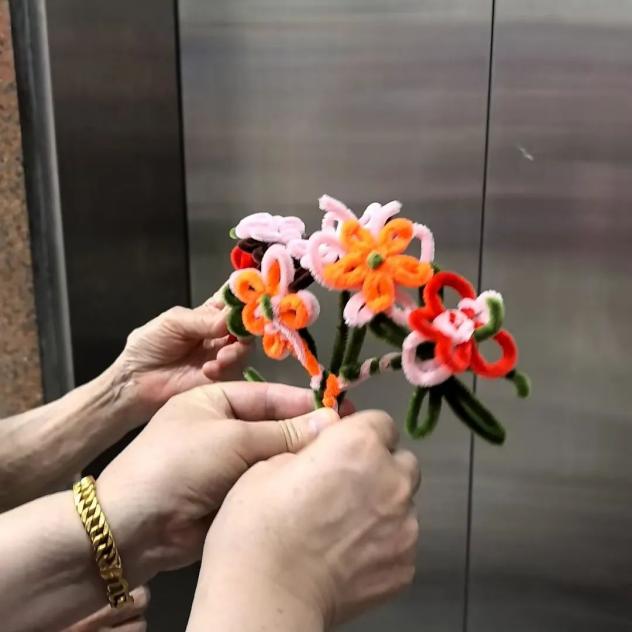 绒花不败,荣华永在,寓意吉祥如意。本次志愿活动,我们将与长者们一同通过扭扭棒DIY制作,感受传统文化的博大精深。活动过程中,长者们在志愿者的协助下,制作了眼镜、蝴蝶戒指、花式手环等各式扭扭棒大作。扭扭棒的DIY制作,不仅激发了长者们的活力,也使非遗文化在代际互动中得以延续。