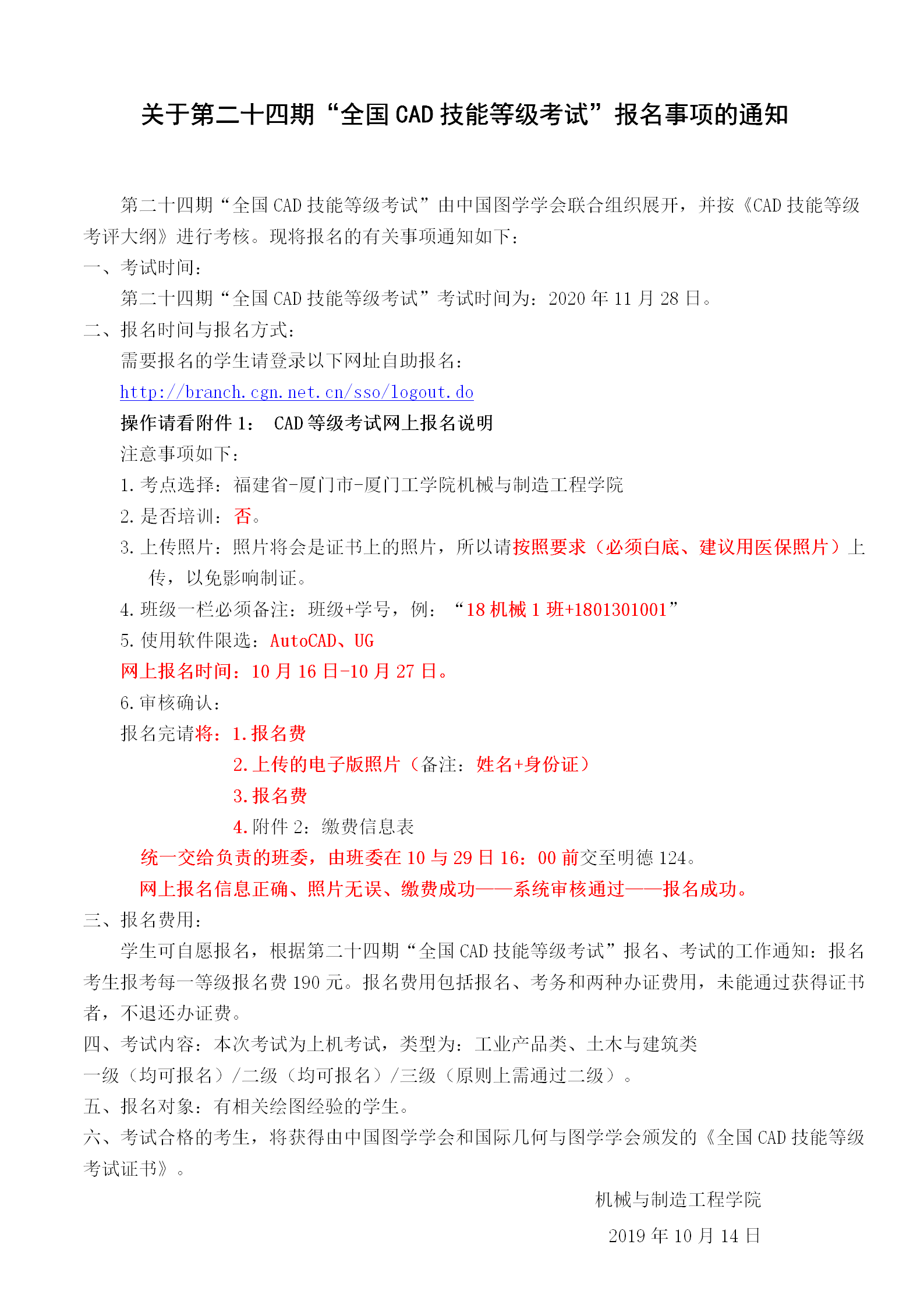 关于第二十四期“全国CAD技能等级考试”报名事项的通知