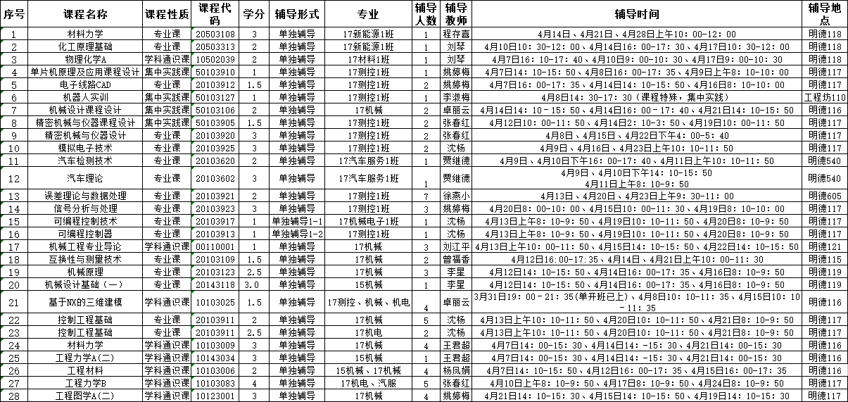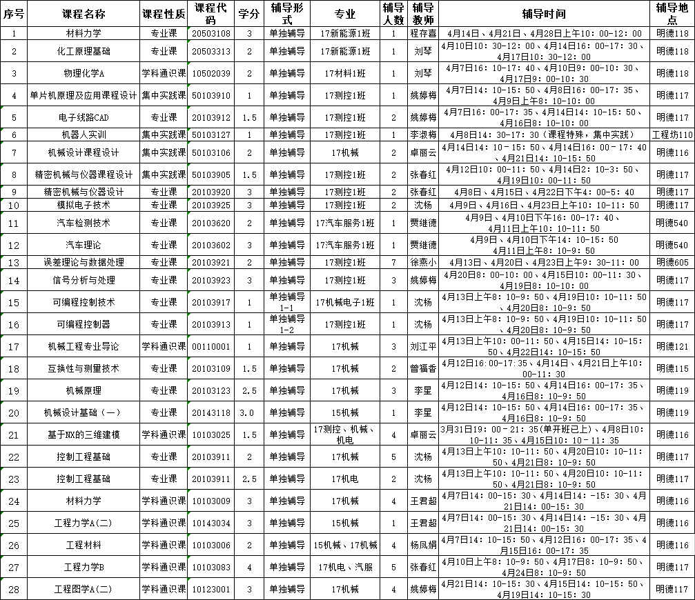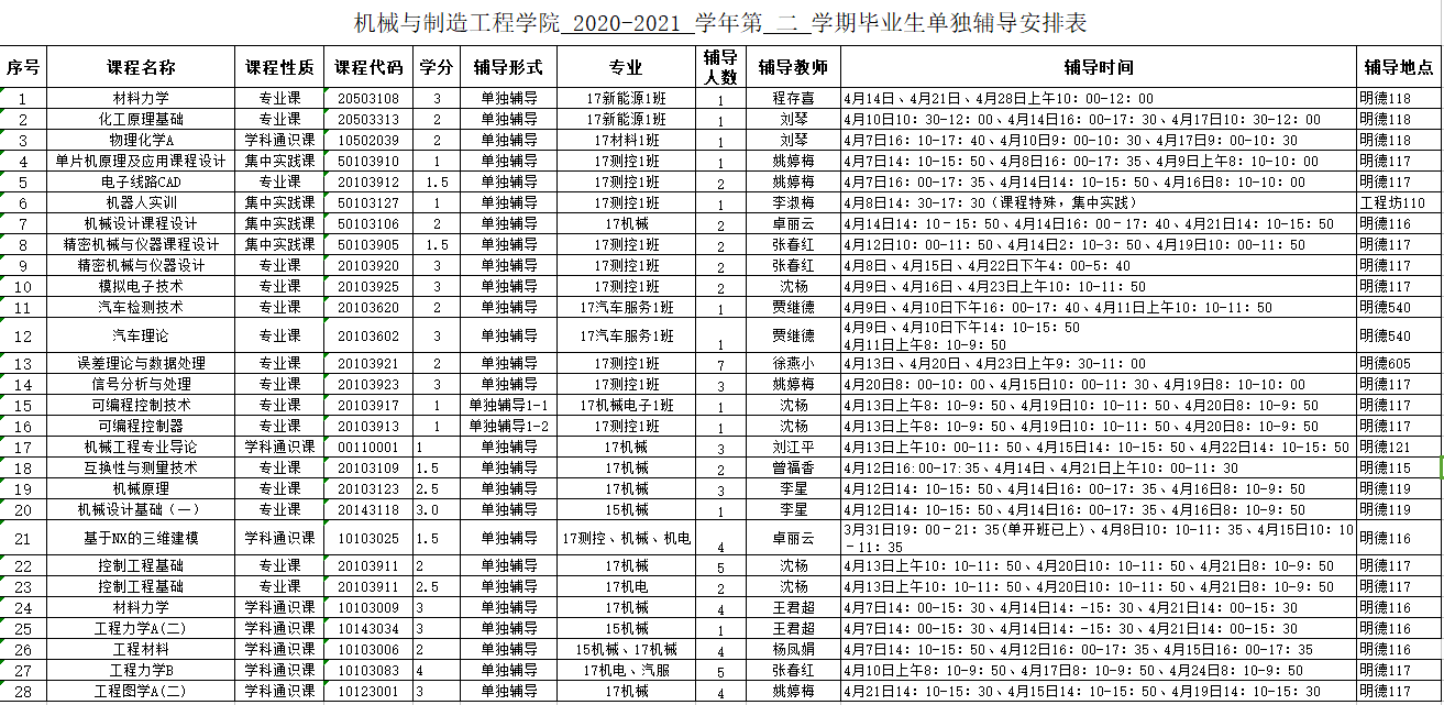 2020-2021 学年第 二 学期毕业生单独辅导安排表