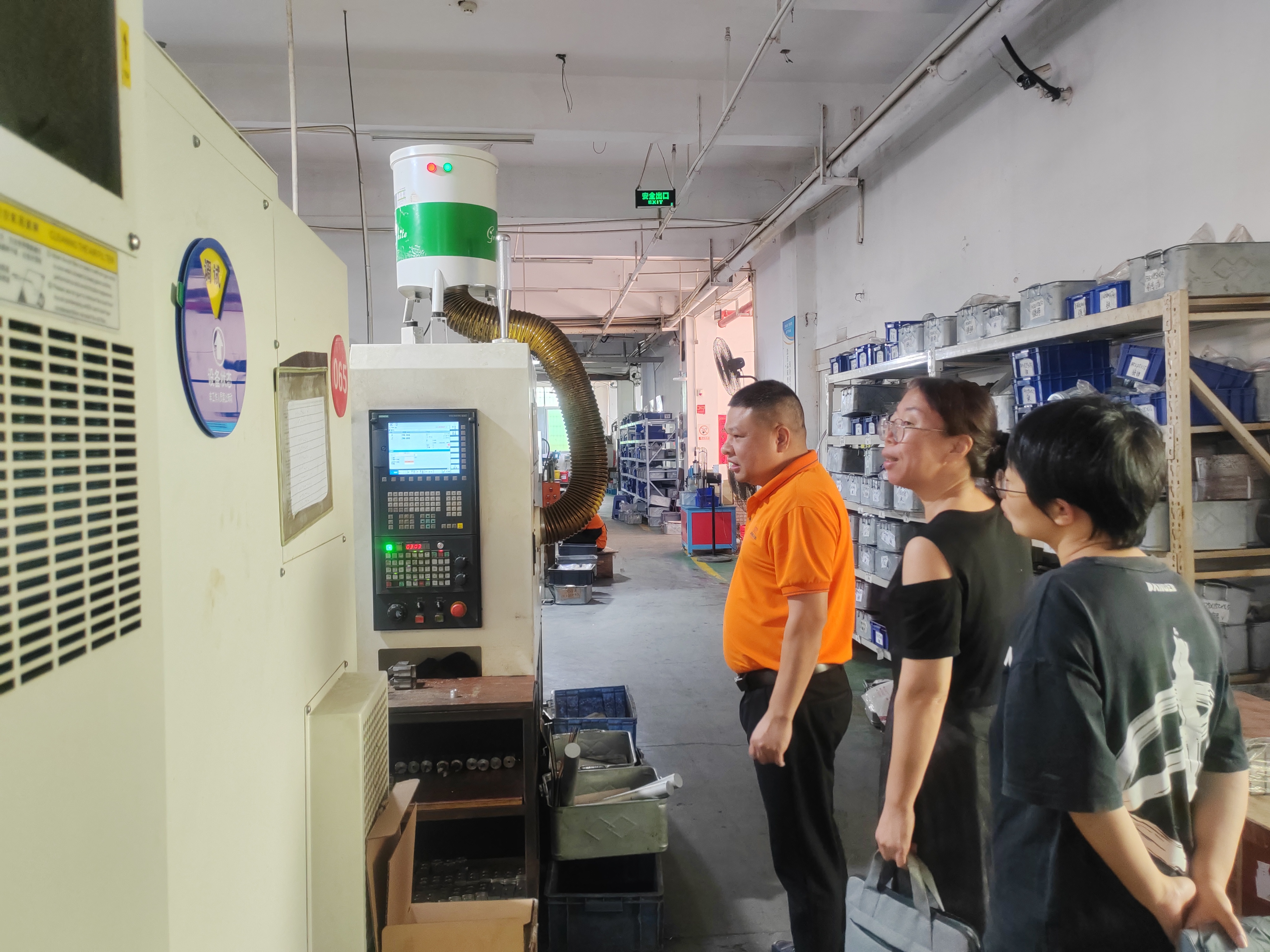 随后,李春辉主任一行参观了双延兴业的厂区,厂区邓正坚经理为我们介绍了产品加工的工艺流程,每个加工环节都采用了数控设备,尤其是一些环节实现了自动化的高效生产及自动检测,确保产品的质量和数量。设备的不停运作、精密产品的产出,更加直观的展现了机械细分行业的不断发展。