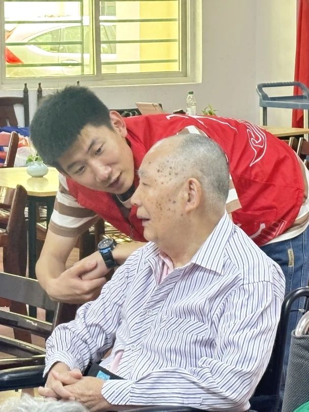志愿者与长者们亲切交谈,长者们用自己的亲身经历告诉我们,无论时代如何变迁,对党和祖国的热爱永远不会变。弱冠桃李与耋耄之年间的交流,有力量而不失温度,使志愿者们的心里悄然生长出了跨越代际的常春藤。同时,也让我们切身感悟到志愿服务精神的核心是“奉献、友爱、互助、进步”。未来,我们期待有更多人加入志愿队伍,让这份温暖永不落幕,让爱与关怀在岁月里长流。