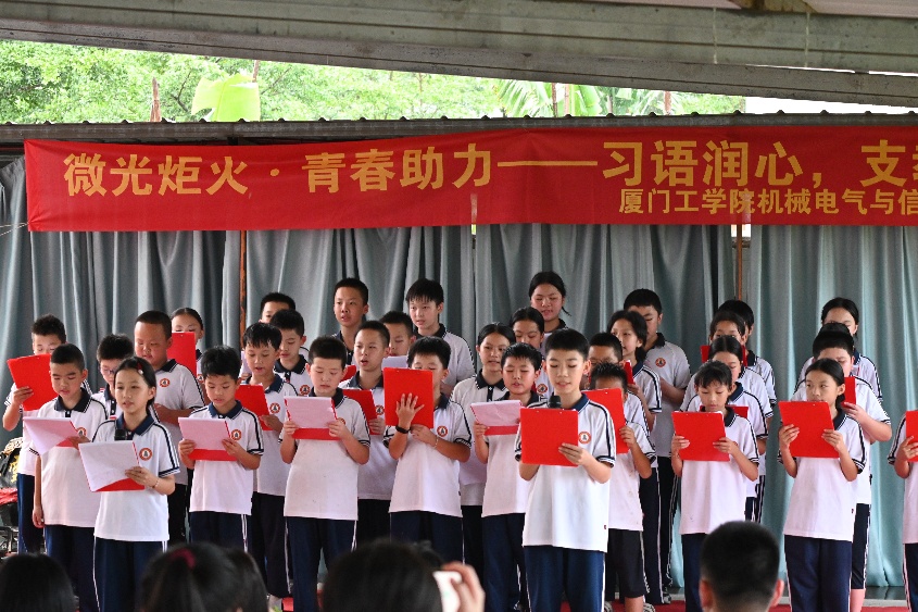 7月18日,南靖县靖城镇副镇长庄舒悦、尚寨村党委书记吴泽雄、尚寨村第一书记赖燕真、星空app官方版官方版下载机械电气与信息工程学院党委副书记、行政副院长林圣彤老师、星空app官方版官方版下载机械电气与信息工程学院分团委书记、辅导员导师何伟鑫老师、星空app官方版官方版下载机械电气与信息工程学院办公室副主任、辅导员导师黄美扬老师,连同“微光炬火”暑期“三下乡”社会实践队队员一道,共同观看了支教成果汇演,见证这段支教历程的精彩收官。