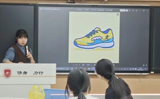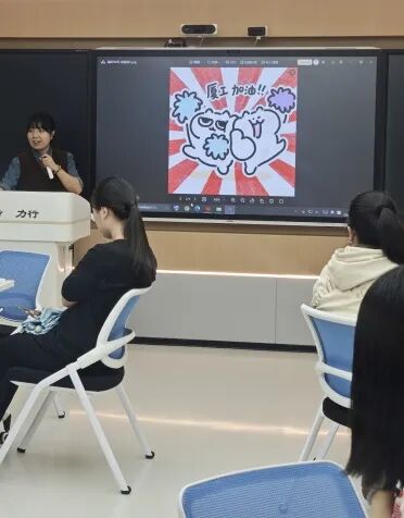 耿老师的课程以“传统技艺+智能科技”为主线,在创意理念层面,她带领学生解构马拉松精神内核——热血标语设计以活力色系搭配奔跑小人、跳动爱心等元素,将抽象的加油声浪转化为视觉符号;运动图形创意则通过奔跑剪影、海浪纹路、凤凰花奖牌等在地化元素,把厦门地域特色融入赛事美学。在技术赋能环节,她深入浅出地讲解AIGC辅助图形设计工具,教学生输入关键词生成底稿、优化色彩搭配、调整线条肌理,让数字技术成为打破手工设计局限的“想象力放大器”。