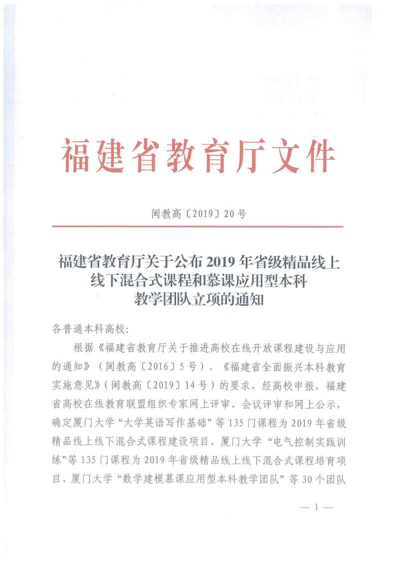 【喜报】建筑科学与土木工程学院荣获“福建省2019年省级精品线上线下混合式课程和慕课应用型本科教学团队” 作者:系统管理员 来源:本站原创 更新时间:2019/11/26 10:03:17 浏览次数:1020次