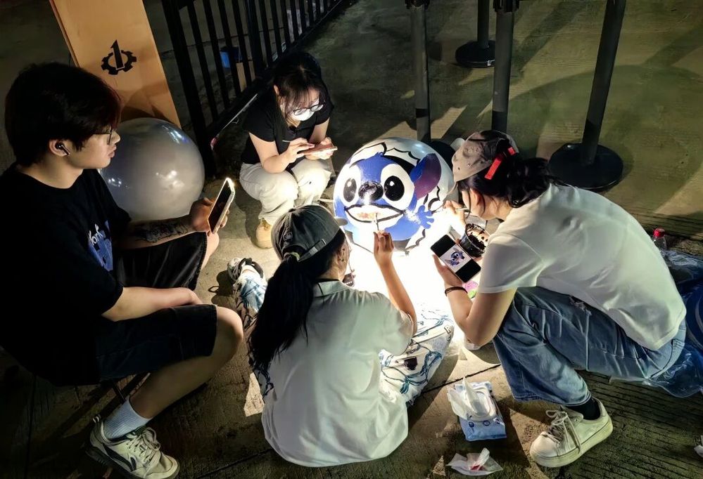 傍晚时分,夕阳的余晖为墙绘镀上一层温暖的金光。灯光亮起,闪光灯在夜色中勾勒出作品的轮廓,队员们继续完善细节,直到最后一笔落下,才露出欣慰的笑容。