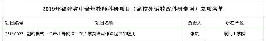 2019年福建省中青年教师科研项目(高校外语教改科研专项)立项名单