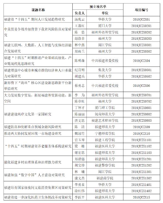 2019年度省政府发展研究中心决策咨询研究重大课题预立项名单