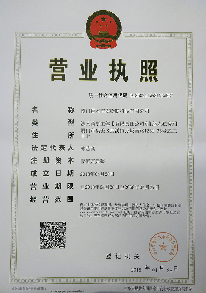 厦门臣本布衣物联科技有限公司成立于2018年4月28日,目前公司运营主要人员有十人。本公司在当今时代发展下,当前主要从事以及涉及的经营范围有:技术开发,服装销售,百货销售。