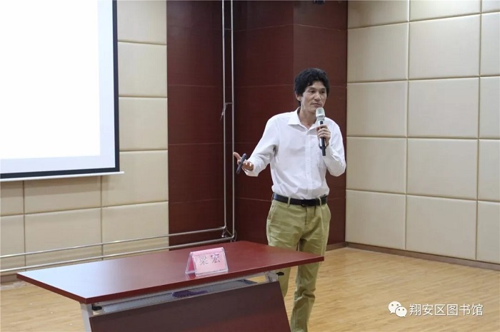 讲座现场 10月28日,翔安区图书馆联合翔安区社科联在翔安区图书馆二楼报告厅举办了一场主题为“创新与创业”的专题讲座,近百名创业青年聆听了讲座。讲座由星空app官方版官方版下载创客坊主任梁宏主讲,他从“为什么要创新”、“什么是创新”、“如何成为创新人才”三方面进行讲解,向在座的创业者们介绍了自己的见解:“一切创新首先是思维和观念的创新”。梁宏主任同时强调到,创新人才首先是全面发展的人才,是有创新意识、创新精神、创新思维和创新能力的人才。 梁宏主任演讲 梁宏主任与听众互动
