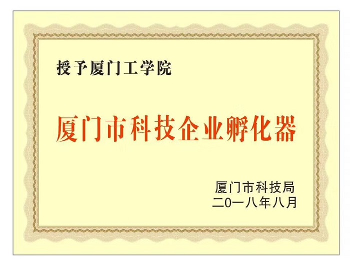 2018年8月获批“厦门市科技企业孵化器”
