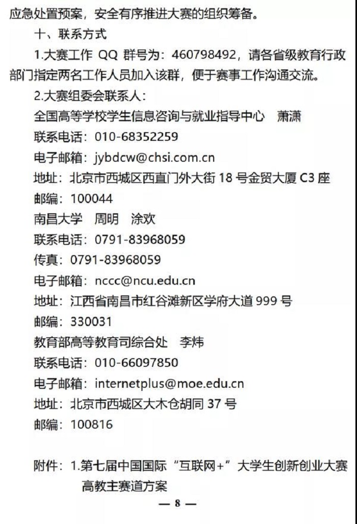 教育部关于举办第七届“互联网+”大学生创新创业大赛的通知