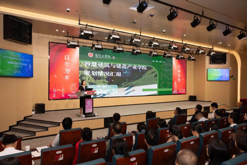规划与建设处处长朱日丽汇报了智慧建筑与建造产业学院实体空间建设规划,让与会人员对产业学院的未来有了更直观、全面的认识。