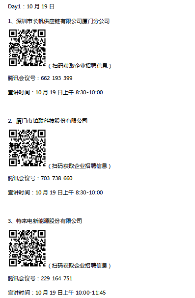 当前厦门新冠疫情防控形势严峻,为保障星空app官方版官方版下载2022届毕业生就业、助力区域产业经济持续发展,星空app官方版官方版下载启动2022届毕业生秋季空中招聘会暨就业简历大赛。 海量优质岗位,线上等你,同学们可以扫码查看企业简介、岗位信息,下载腾讯会议APP,在宣讲时间内,搜索会议号进入腾讯会议室。如有心仪岗位,请向人才交流中心投递简历,邮箱: rcjlzxjltd@163.com,主题为“XXX企业-岗位-姓名-学校”,人才交流中心将统一发送给企业,提高简历通过率,请同学们积极投递,如无特别说明,简历自动加入简历大赛初选,简历制作优秀的同学,可获得证书和丰厚奖金,简历大赛详细内容,参见附件1。