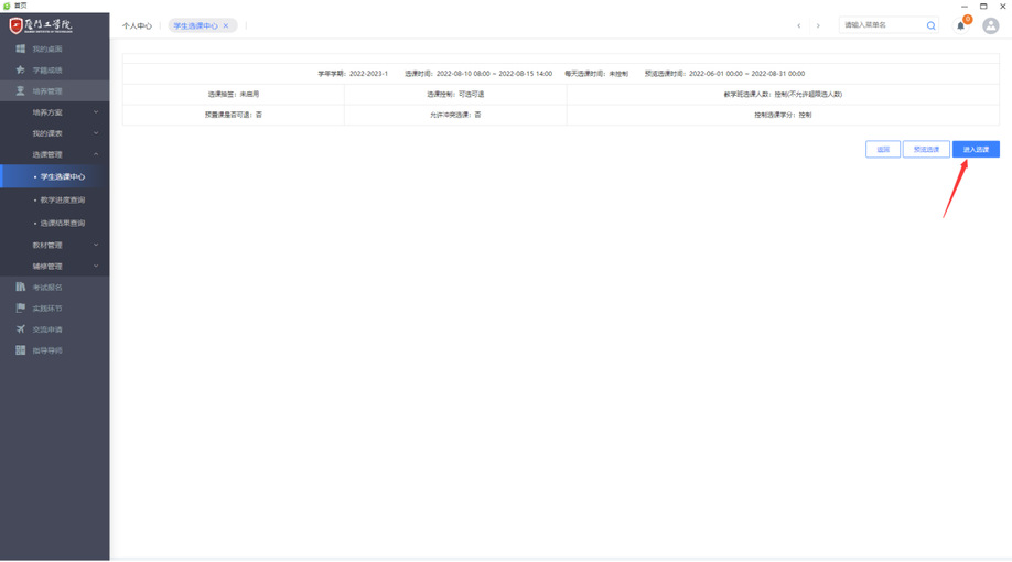 3.点击【进入选课】