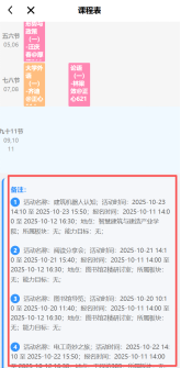 报名成功后,项目信息将会显示在项目当周课表的【备注栏】,如下图,请同学们选课结束后及时登录教务系统查看。