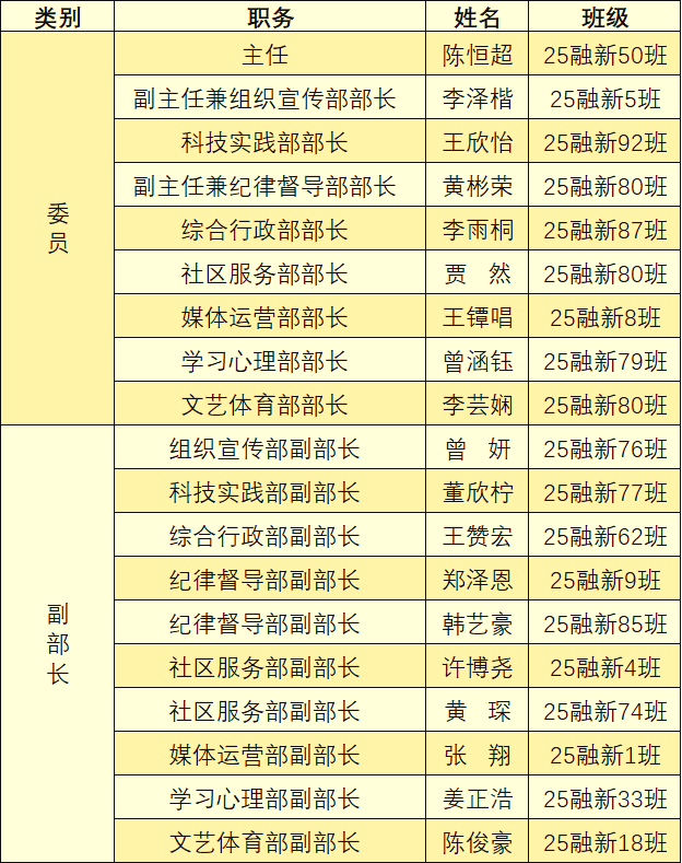 本次选拔面试坚持公平、公正、公开原则,经过学生自主报名、资格审查、综合面试及组织考察等环节,围绕学生综合素质、服务意识和岗位适配度等方面进行综合评估,最终从2025级新生中遴选出19名学生干部。