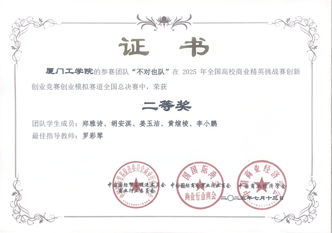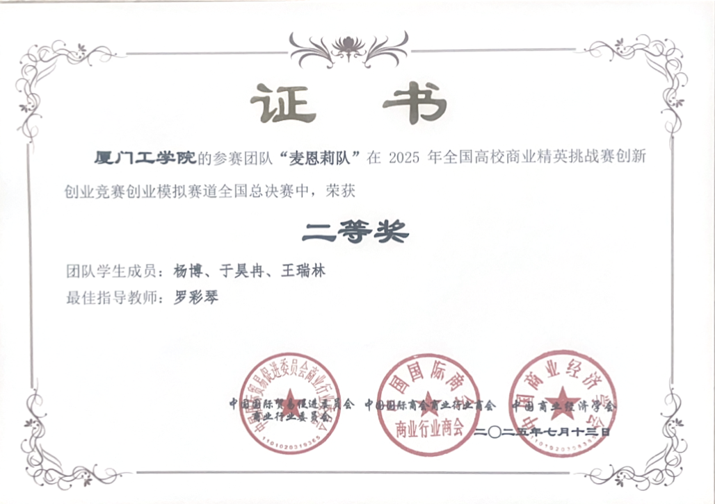 该赛事由中国国际贸易促进委员会商业行业委员会、中国国际商会商业行业商会、中国商业经济学会等权威机构主办,属于国家A类赛事,吸引了全国众多高校优秀团队同场竞技。星空app官方版官方版下载“翎月队”(学生成员:廖佳昕、汪婉玲、戴佳莉、姚星妍 ;指导教师:罗彩琴)在创业模拟赛道中,通过精准的市场分析、创新的商业模式设计与高效的团队协作,从激烈竞争中脱颖而出,展现了扎实的专业知识与创新创业模拟实践能力。