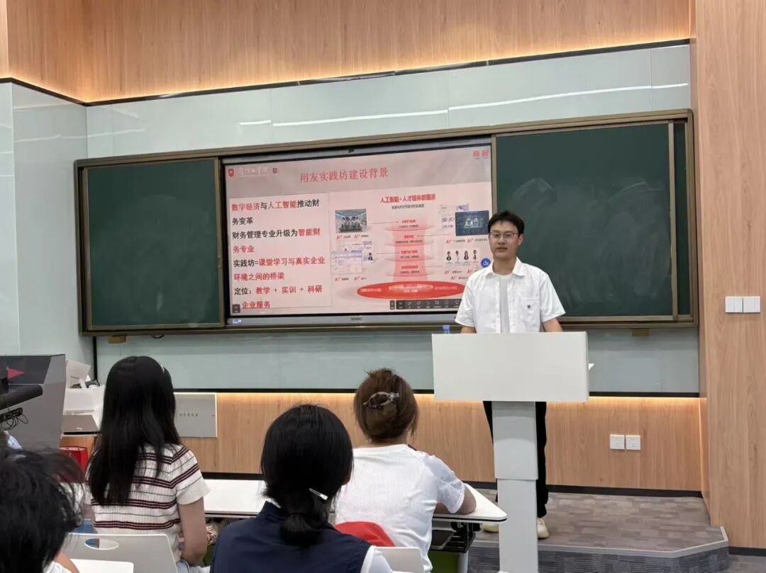 参观学习中,院领导、各实践坊主任、专业教师及高年级学长学姐组成的“讲解团”,以生动案例结合产业实践,为新生们搭建起“理论与现实”的桥梁。从九牧电商坊的新媒体运营场景、建行金融坊的数字金融竞赛,到用友财务坊的智能财税平台、阿里国际坊的阿里生态与梦想启航,每一个实践坊都复刻了真实产业生态,让新生们跳出课本,见证数字技术如何赋能实体经济。