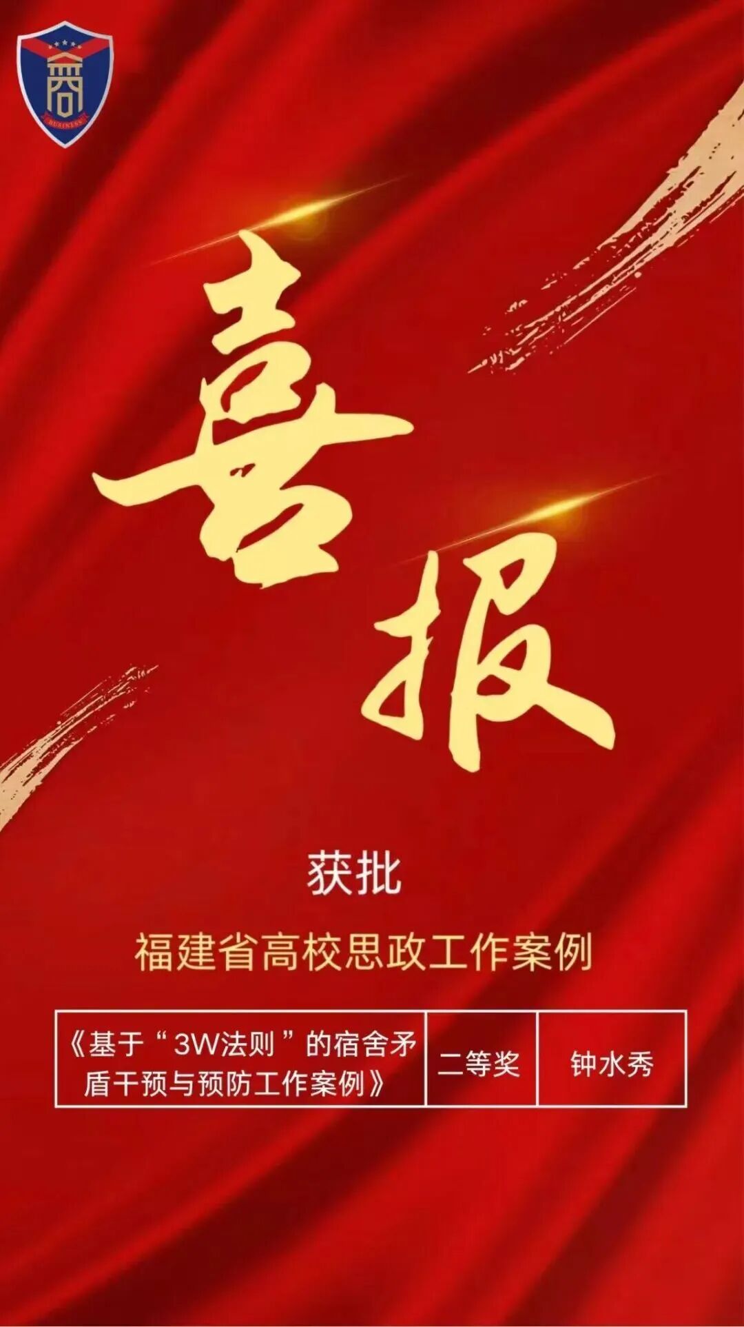 喜报 | 钟水秀老师在福建省高校思政工作案例大赛中荣获二等奖!