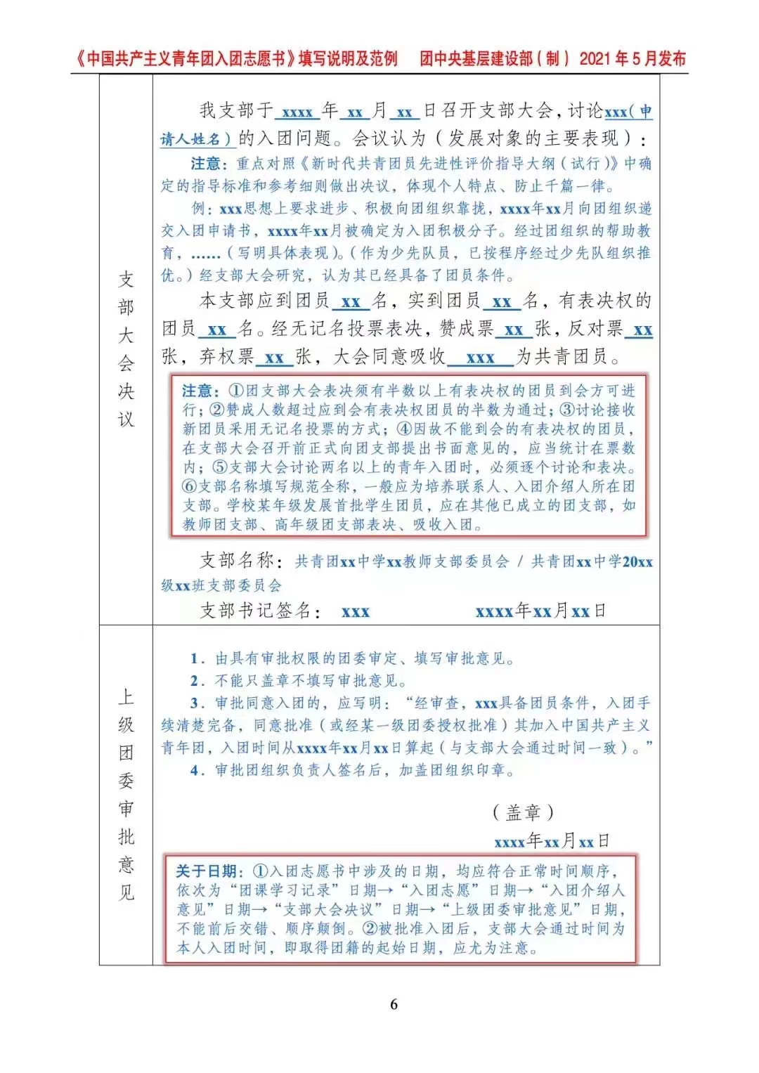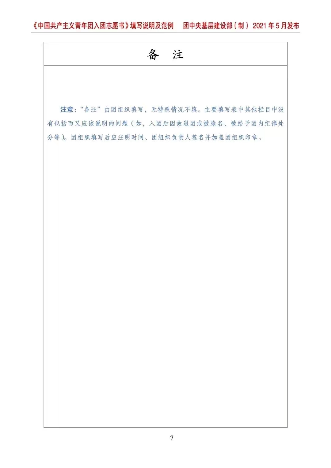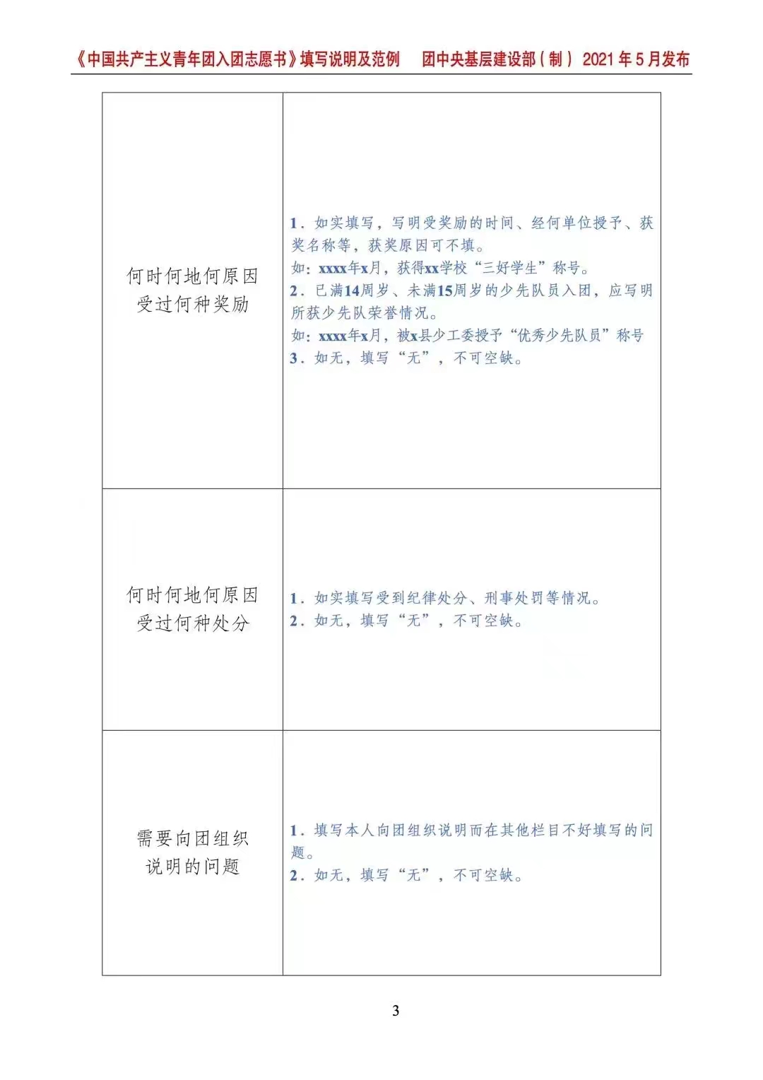 工作中发现,有的地方在填写、审核入团志愿书过程中存在指导不具体、填写不规范、审核不细致、审批不严谨等问题,影响了发展团员的质量和工作的严肃性、规范性。为加强具体工作指导,团中央基层建设部制定了入团志愿书填写说明及范例,供广大基层团组织、团干部和入团积极分子学习掌握。