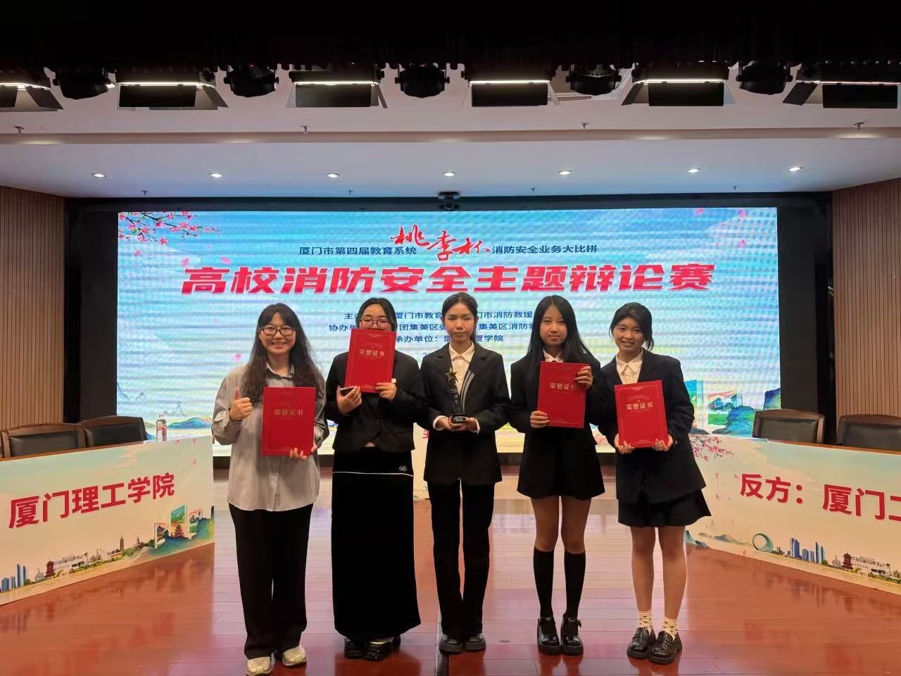为了提升大学生的消防安全意识,拓宽其消防安全知识领域,并营造浓厚的校园消防安全宣传教育环境,厦门市教育局与厦门市消防救援支队于11月11日携手在厦门华厦学院成功举办了厦门市第三届高校消防安全辩论邀请赛。经过激烈的角逐,我校辩论队最终荣获了比赛的亚军。