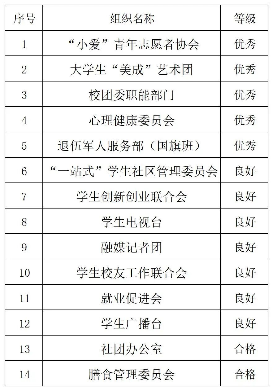 本次年审汇报会涵盖了心理健康委员会、大学生“美成”艺术团、学生创新创业联合会、“一站式”学生社区管理委员会、就业促进会、“小爱”青年志愿者协会、国旗护卫队、学生校友工作联合会、校团委职能部门、融媒记者团、学生电视台和学生广播台等多个校级学生组织。