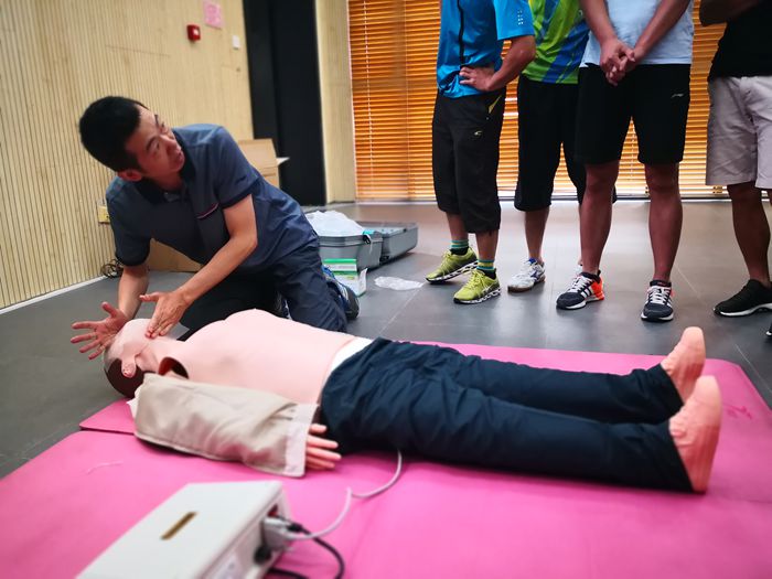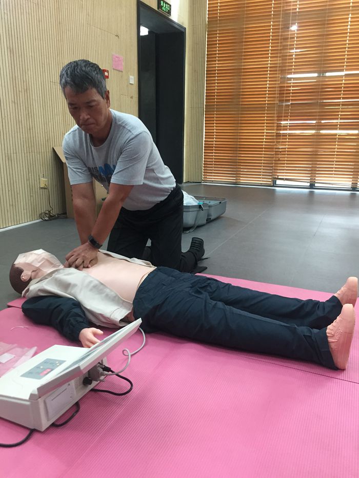 此次培训过程中,刘永辉教授详细讲解了徒手心肺复苏的基本流程、方法步骤和操作要领,同时进行现场示范。参加培训的每一位老师都认真记录动作要领,并进行一对一的现场实践操作。培训的最后,刘永辉教授结合实际情况,为老师们强化了安全知识,表达了对全体教师的美好祝愿。