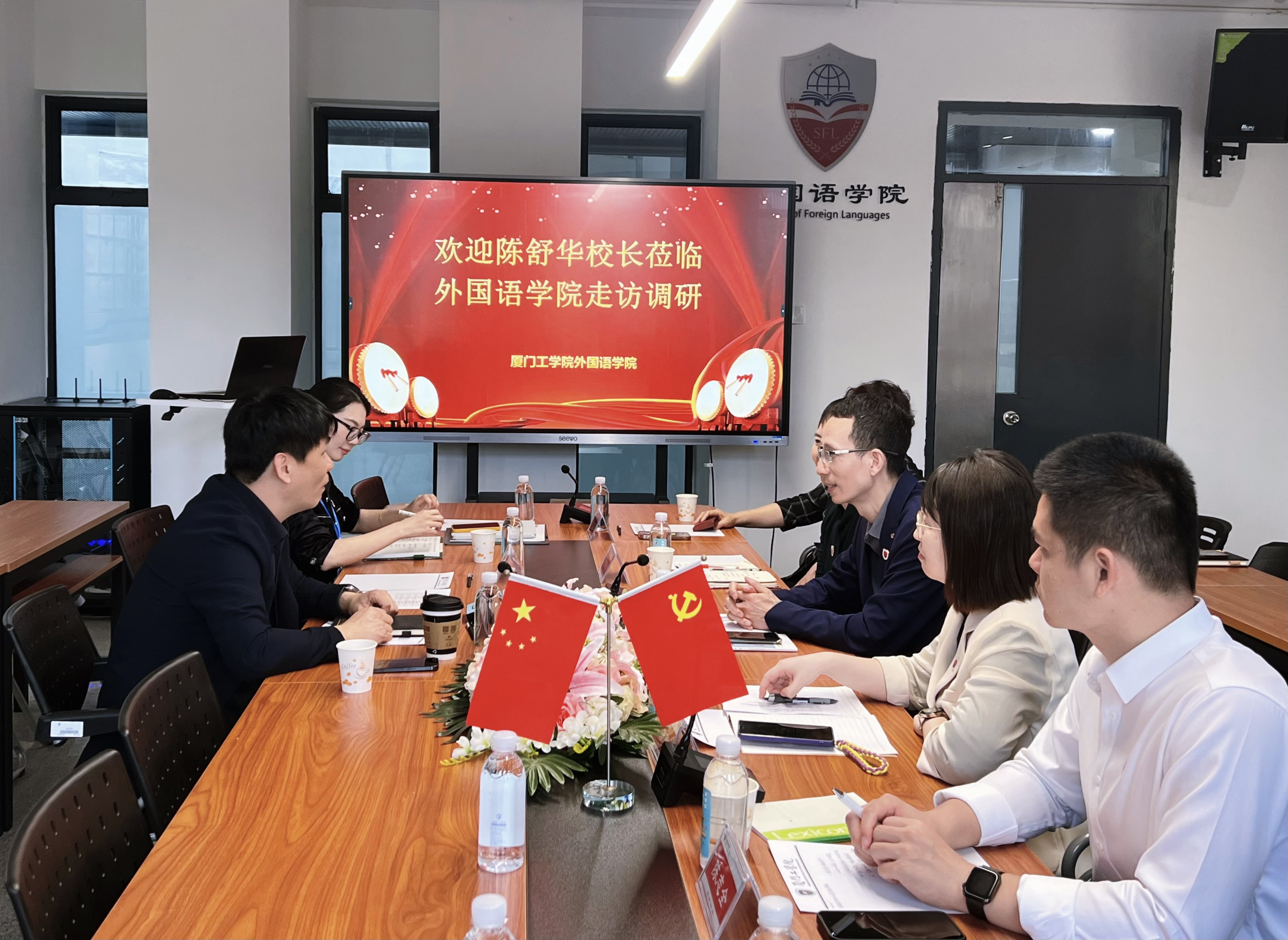 4月1日上午,校长陈舒华教授到外国语学院走访调研。院领导、各课程组负责人、学院办公室全体人员参加了调研座谈会。