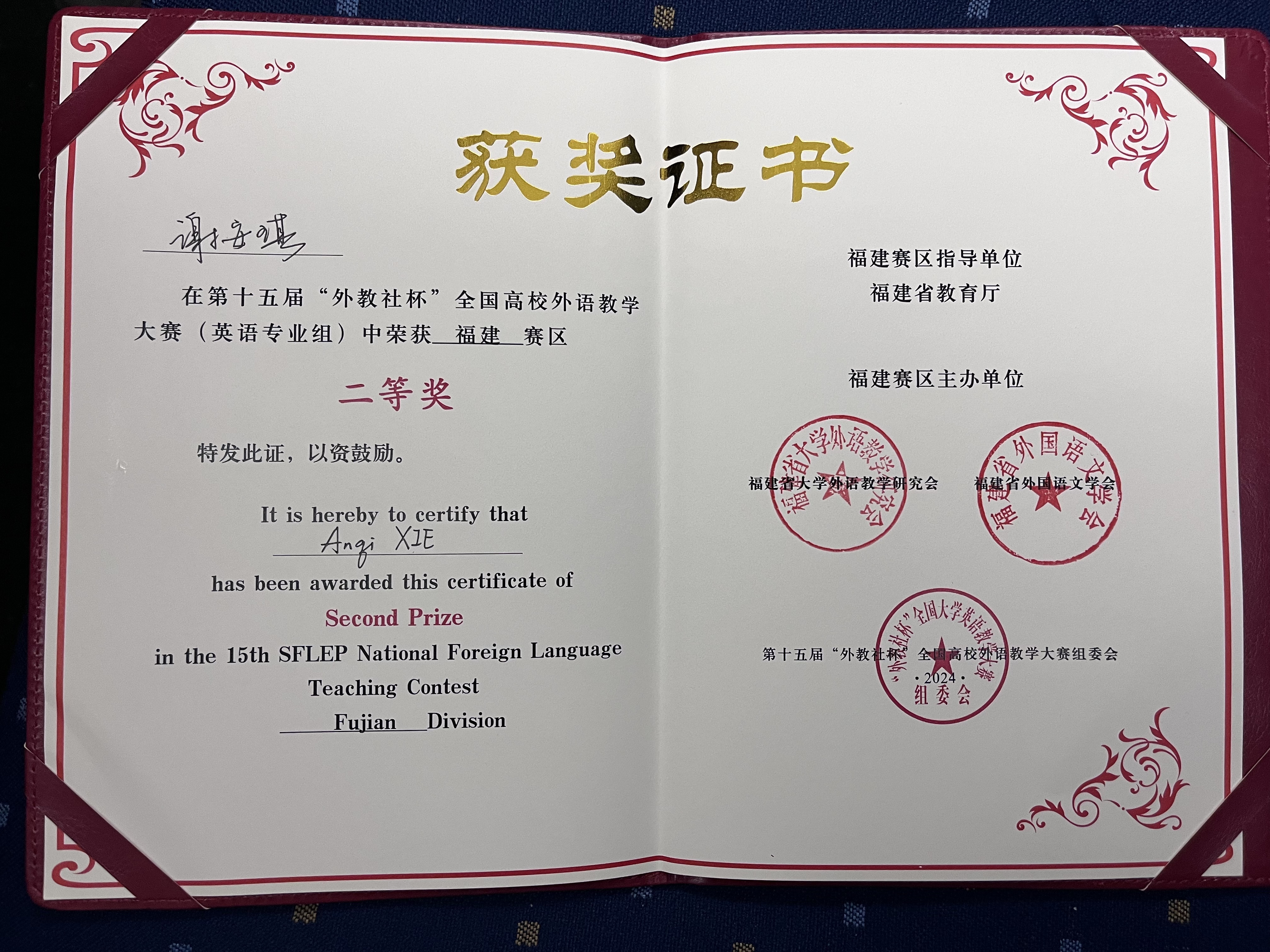 2024年6月22日,第十五届“外教社”杯全国高校外语教学大赛(英语专业组)福建赛区在福建福州大学举行。来自福州大学、华侨大学等多所高校教师参加了此次比赛。我校外国语学院的谢安琪老师在本次比赛中获得英语专业组二等奖。我校外国语学院院长邱能生教授受邀担任本次大赛的评委。